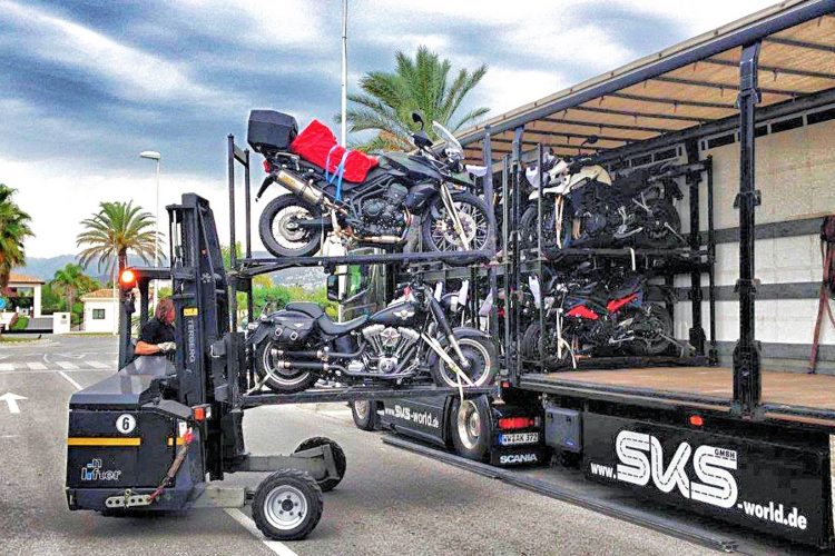 Unverpackte Motorräder, ATV´s, Quads in speziellen SKS-Transportgestellen